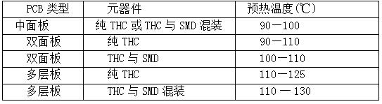 印制板預(yù)熱溫度和時(shí)間要根據(jù)印制板的大小、厚度、元器件的大小和多少,以及貼裝元器件的多少來確定。預(yù)熱溫度在90—130℃(PCB表面溫度),多層板及有較多貼裝元器件時(shí)預(yù)熱溫度取上限。預(yù)熱時(shí)間由傳送帶速度來控制。如預(yù)熱溫度偏低或和預(yù)熱時(shí)間過短,焊劑中的溶劑揮發(fā)不充分,焊接時(shí)產(chǎn)生氣體引 起氣孔、錫珠等焊接缺陷;如預(yù)熱溫度偏高或預(yù)熱時(shí) 間過長,焊劑被提前分解,使焊劑失去活性,同樣會引起毛刺、橋接等焊接缺陷。因此,要恰當(dāng)控制頂熱溫度和時(shí)間,最佳的預(yù)熱溫度是在波峰焊前涂覆在PCB底面的焊劑帶有粘性(見表3-1)。