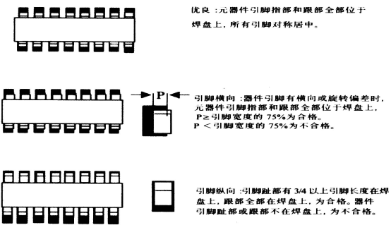 3.SOT、SOIC的引腳不能變形,對引線間距為0.65mm以下的多引線QFP器件,其引腳共面性應(yīng)小于0.1mm(可通過貼裝機(jī)光學(xué)檢測)。
