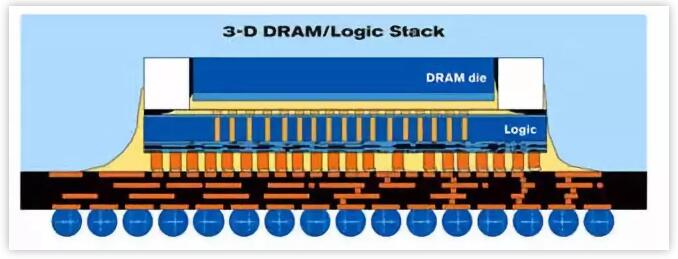 為了避免這種延遲,同時也為了滿足性能、頻寬和功耗的要求,設(shè)計人員開發(fā)出在垂直方向上將芯片疊層的新技術(shù),也就是三維堆疊封裝技術(shù),該技術(shù)可以穿過有源電路直接實現(xiàn)高效互連。